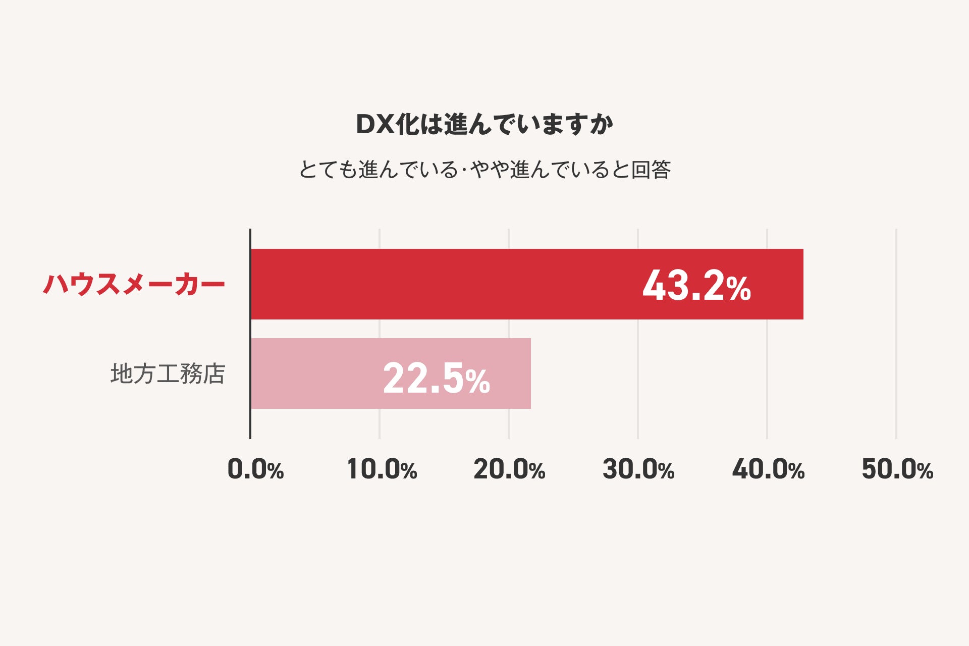 また、DX化ではハウスメーカーと比べて、地域工務店が2倍程度遅れていることが浮き彫りとなりました。