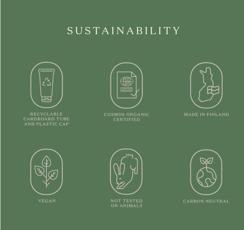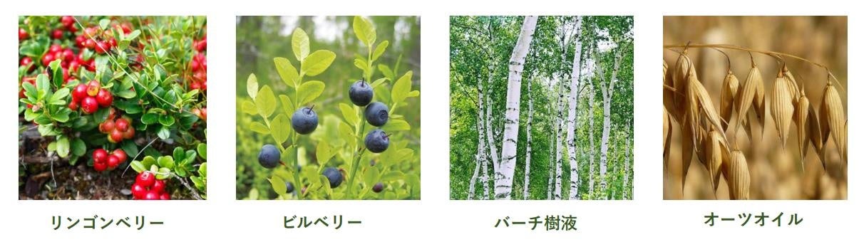 フィンランド産の植物エキス、白樺樹液、オーツオイル、ビルベリー種子オイル配合。