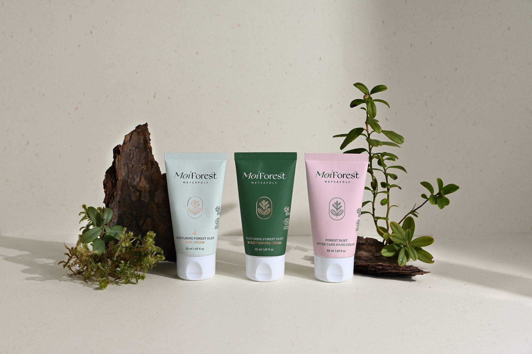 左からMoi Forest フォレストダスト ベビークリーム、フォレストダスト クリーム、フォレストダスト ケアハンドクリーム。