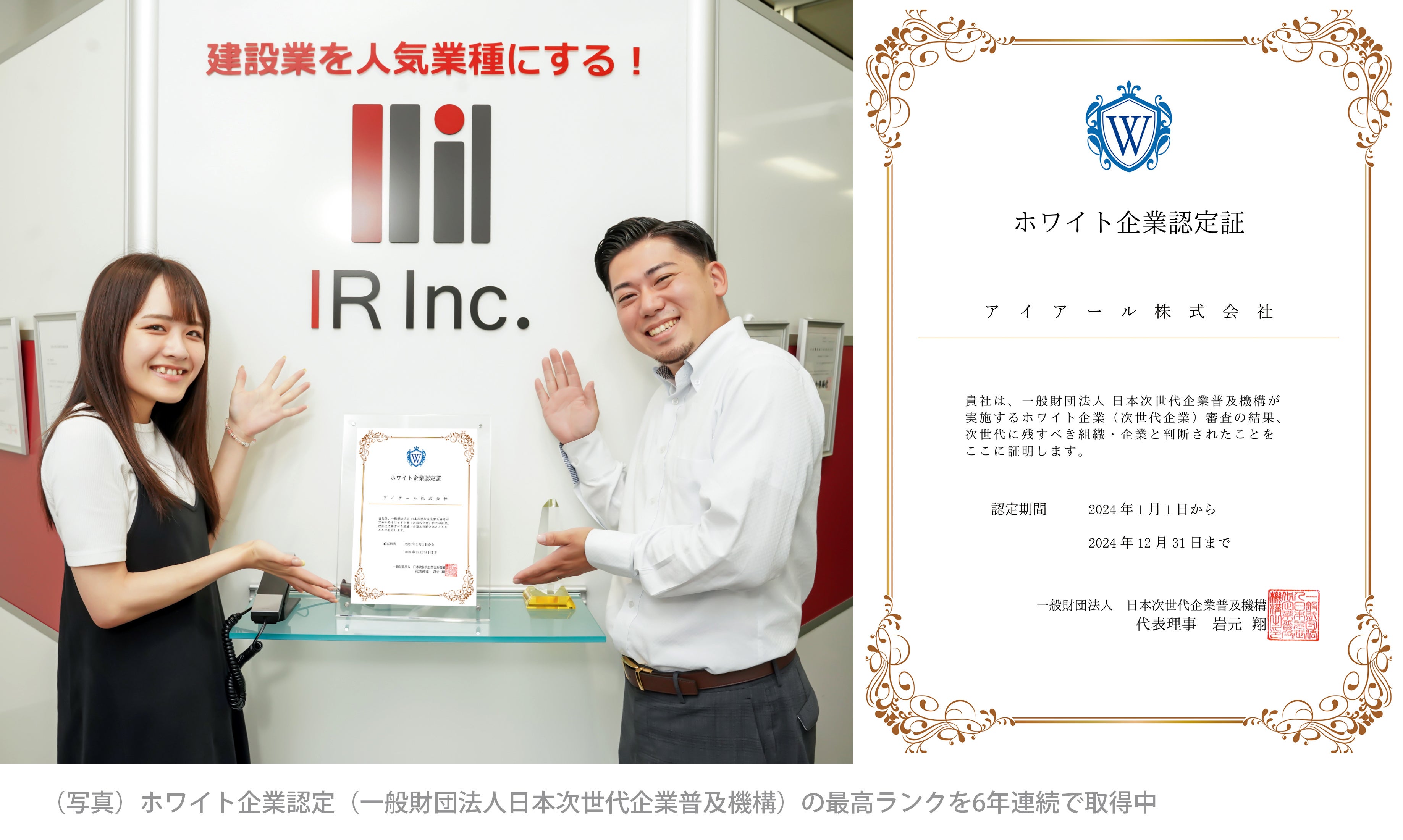経験のある方も無い方も、男性も女性も、誰もが建設業界で活躍できる会社を目指すことで、アイアールは建設業界を人気業種に変えていきます。今後もアイアールの取り組みに是非ご注目ください。
