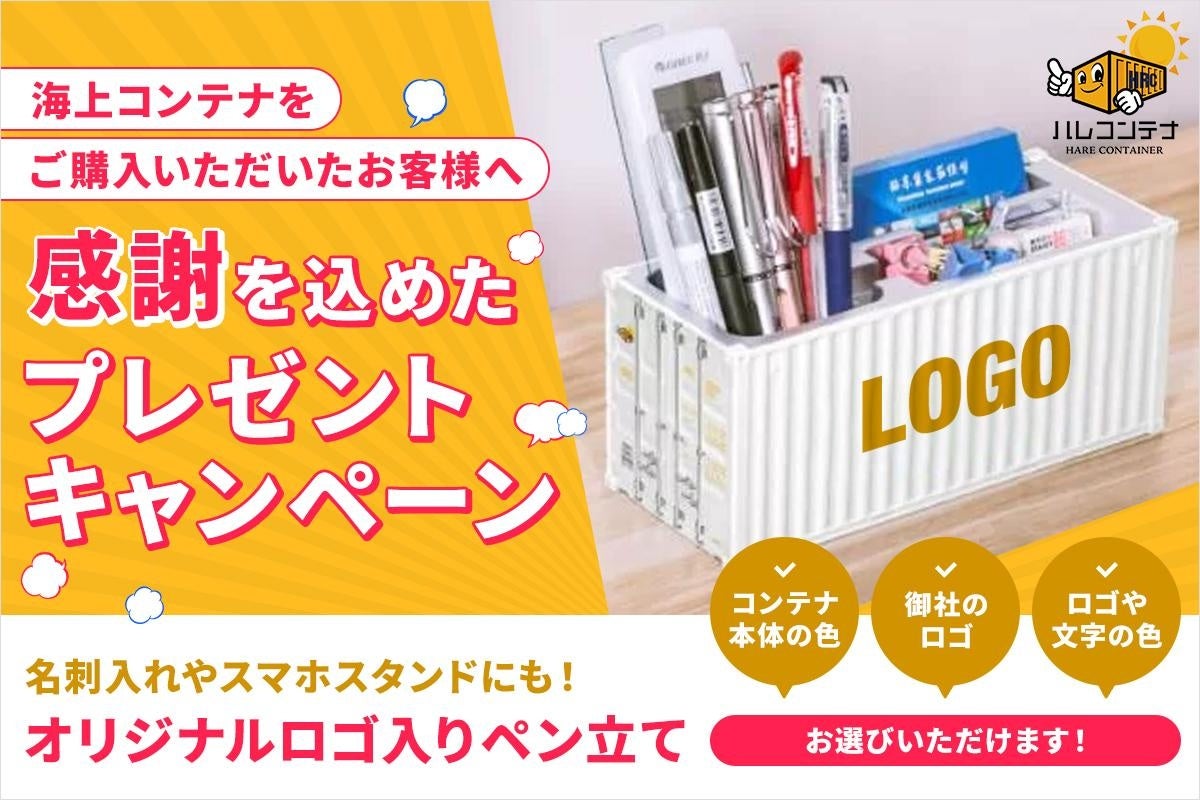この度、海上コンテナをご購入していただいた皆様に、オリジナルロゴ(会社名・個人名)が入ったペン立てをプレゼントいたします。