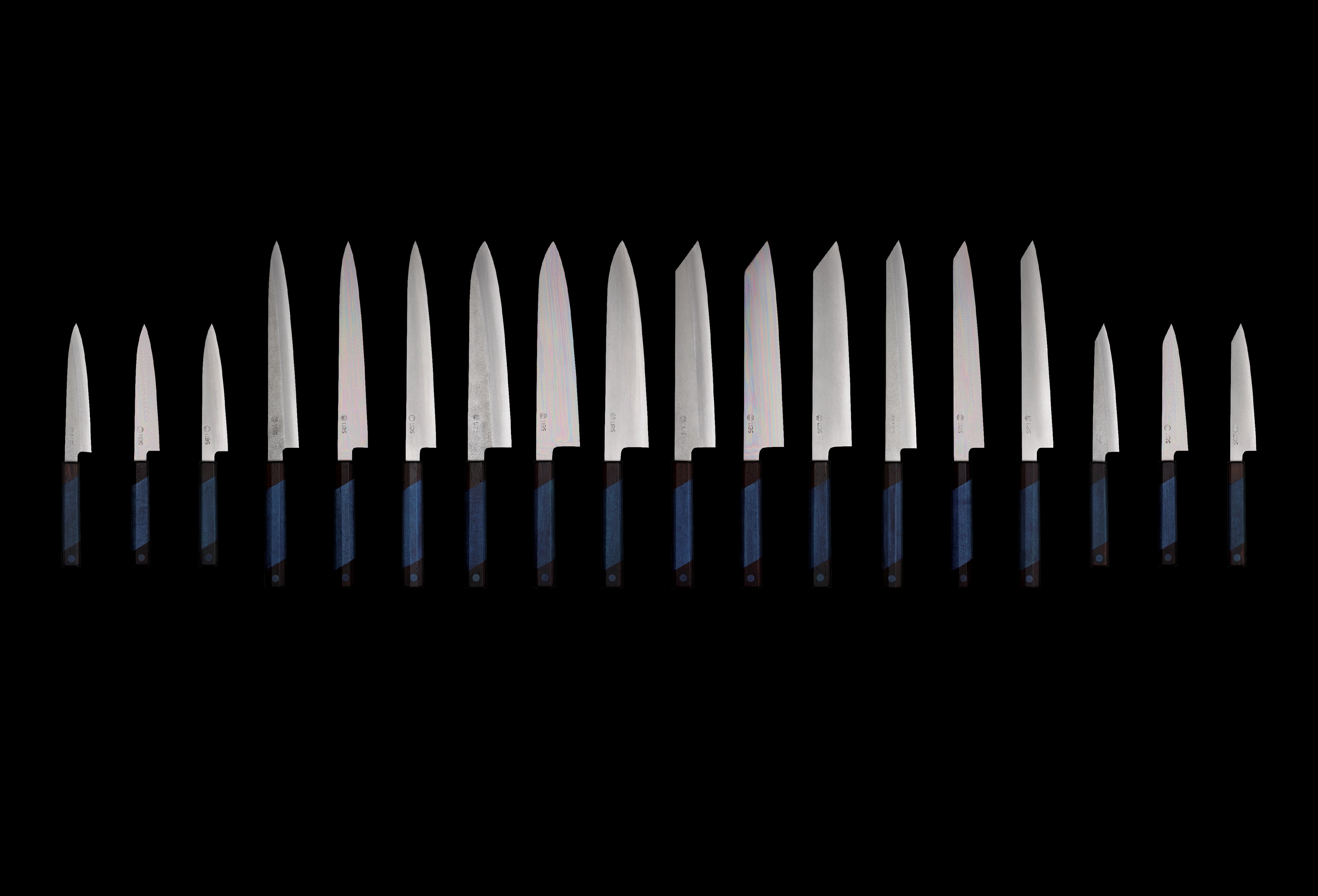 実用性を追求し、使いやすいステンレス製両刃の刀身で、持ちやすさとバランスに最大限配慮した柄の形状を採択。刀身・柄・藍染の3者のプロフェッショナルが製作