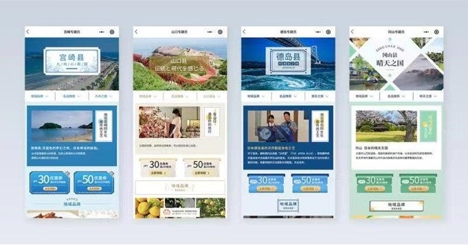 WeChatミニプログラム内で当社が運営する「⽇本国家館」は、越境ECプラットフォームとしてこれまでも京都府、北海道、宮崎県、山口県、岡山県、徳島県など日本の地方自治体と連携してまいりました。各自治体の特集ページを開設するなど特産品の販売を行っています。