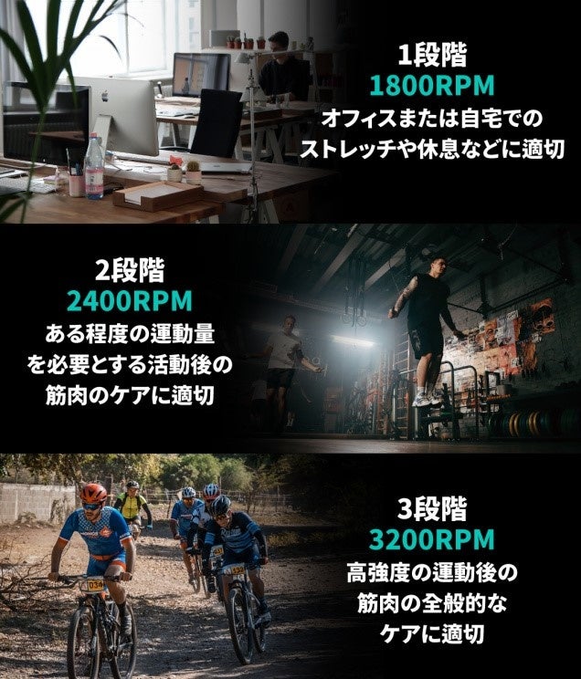 筋膜リリースガン! もう運動後に使用するフィットネス用でのみ使用する機器ではありません。仕事で溜まったストレスの発散や日常生活でいつでもどこでも手軽に使える全天候型リラクシング機器です。