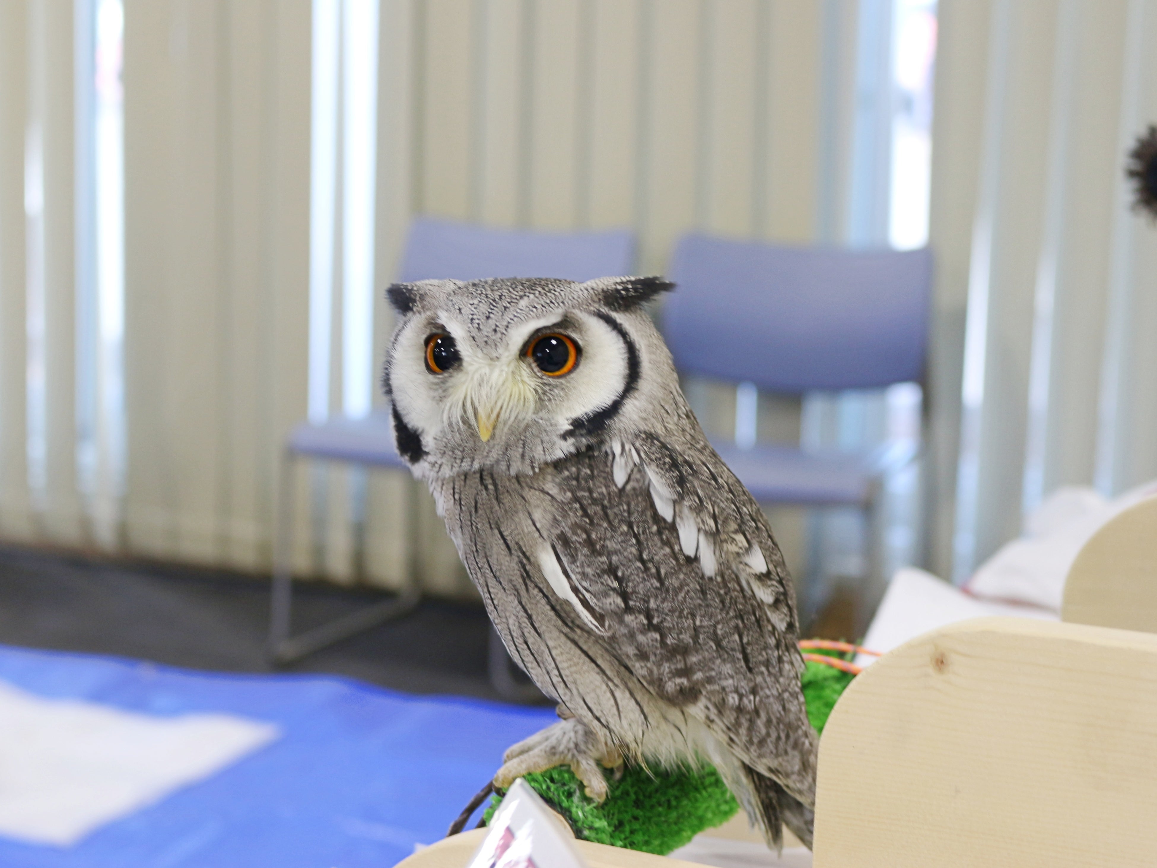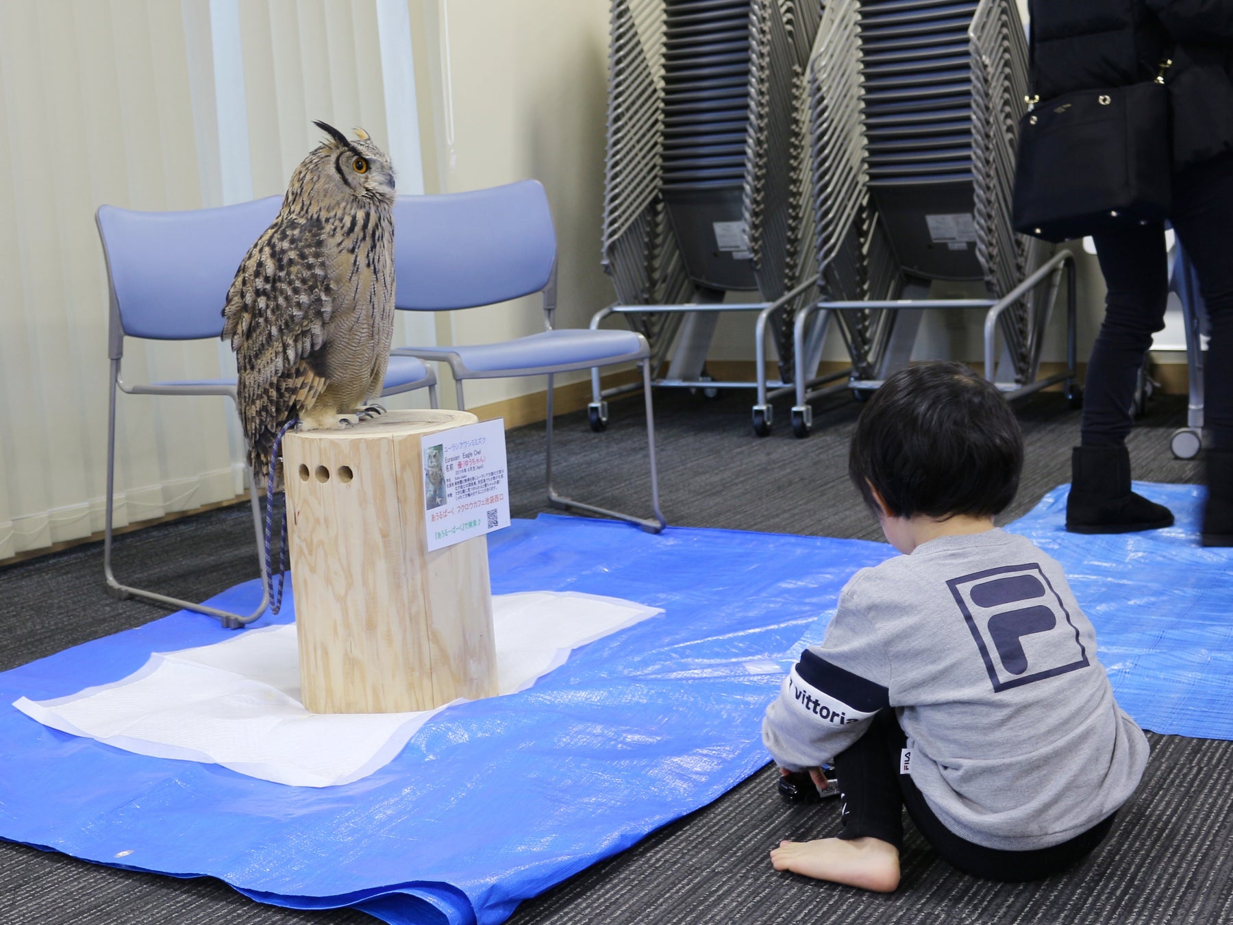 大小のフクロウたちがお出迎え。ヤクルトレディのお仕事説明会に、フクロウカフェを併設。
