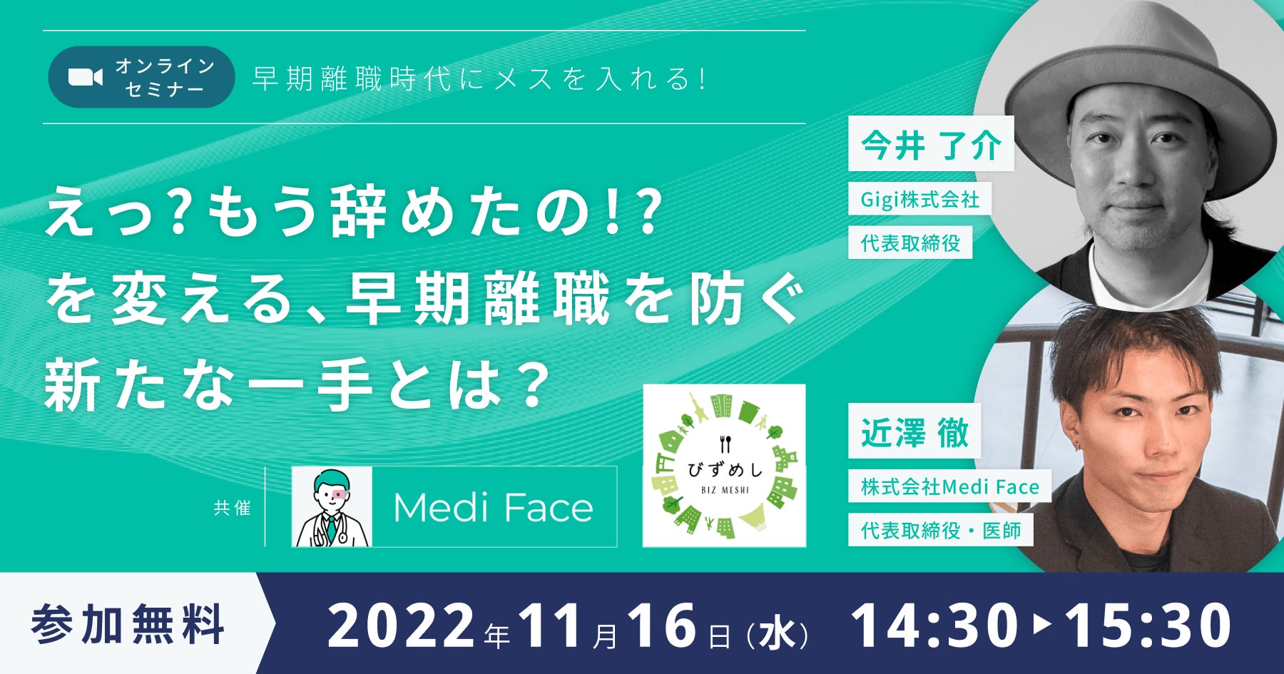 Medi Face×びずめし共催セミナー「えっ?もう辞めたの!?を変える、早期離職を防ぐ新たな一手とは?」をオンラインで開催