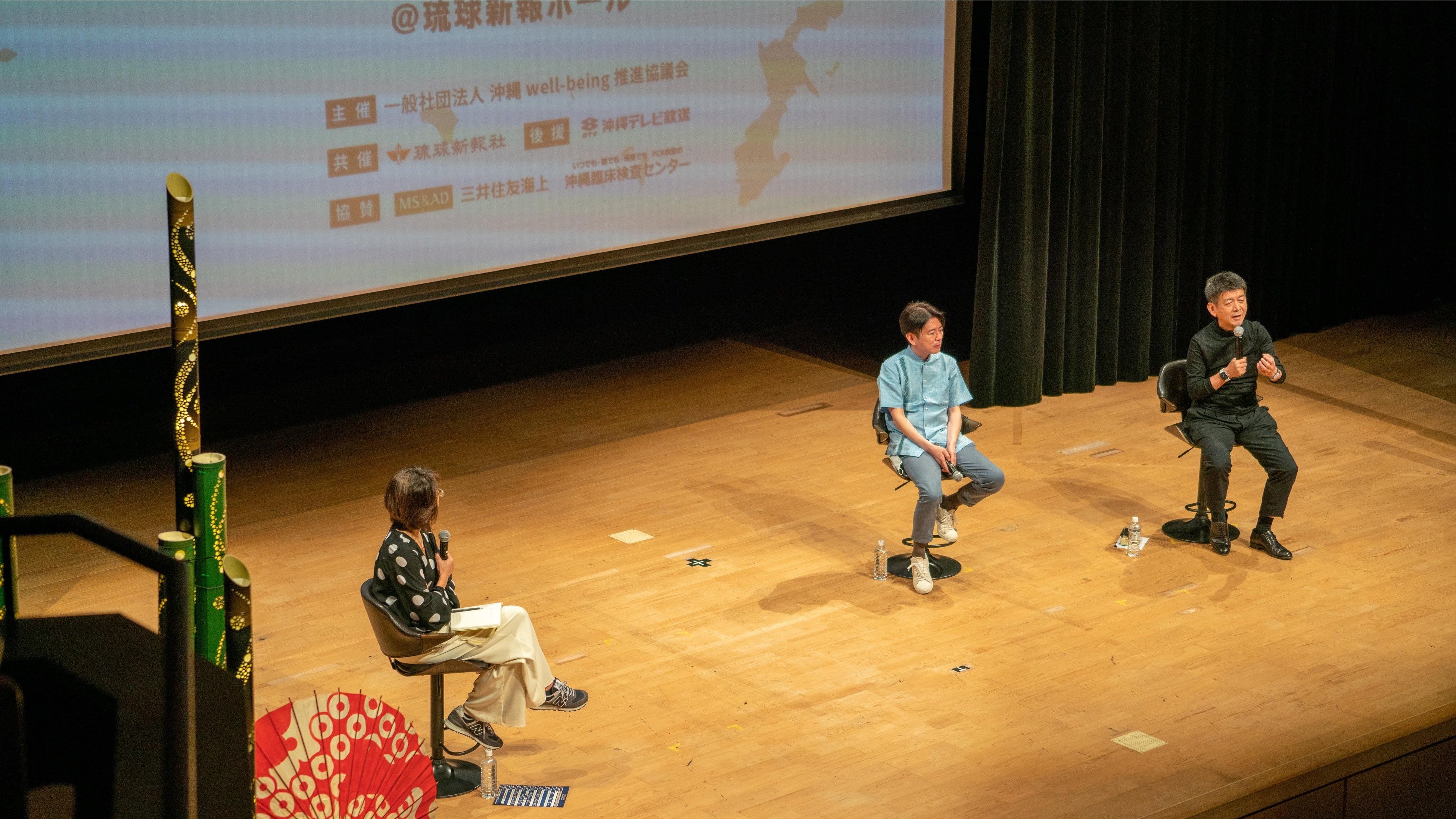 また、世界の中でも日本が最初に経済成長から心の成長の時代に突入しており、ウェルビーイング第一の時代を日本、沖縄から発信することに意味があると熱弁した。さらには日本の中で幸福度ランキングが1位の沖縄は、前野自身も何度も来ているが本当に人が温かく、日本の人口の1%でもそれ以上の存在感がある、と沖縄からウェルビーイングを始めることの可能性についても発信した。