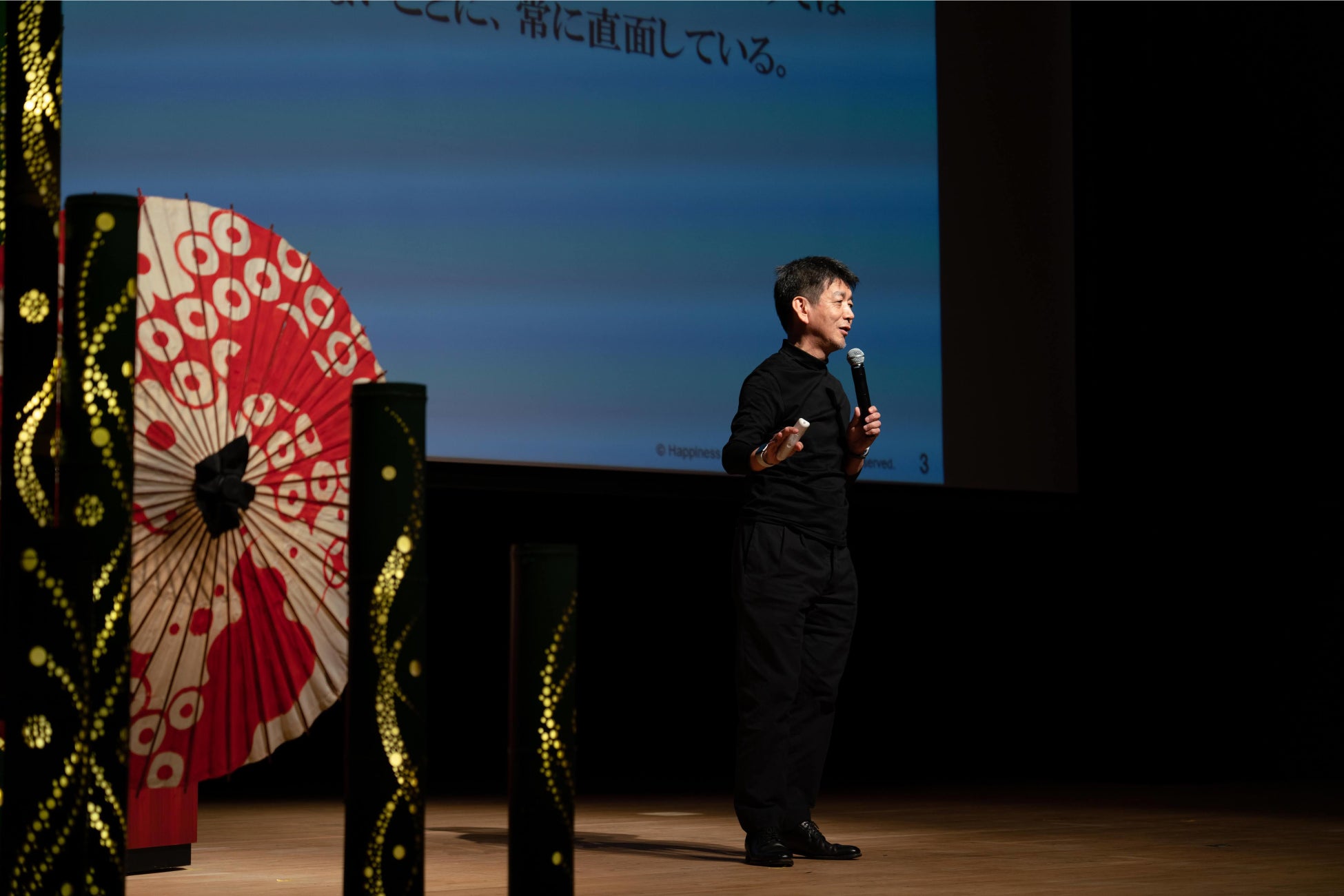 学術的な観点から、日本の幸せにおける歴史的背景や、これから求められる非地位財型幸せを創るための「幸せの4つの因子」(やってみよう・ありがとう・なんとかなる・ありのまま)などについて解説し、これまでのセッションで出てきた話を総まとめする形となった。