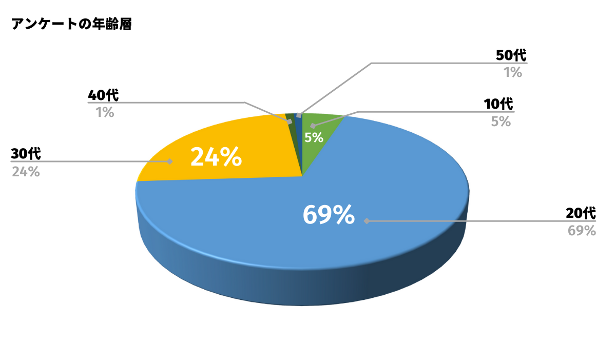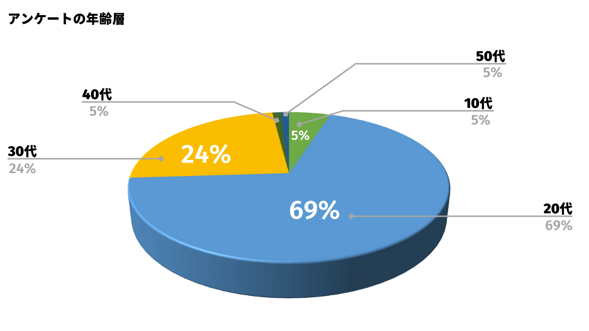 ※年代割合は10代:5%、20代:69%、30代:24%、40代:1%、50代:1%