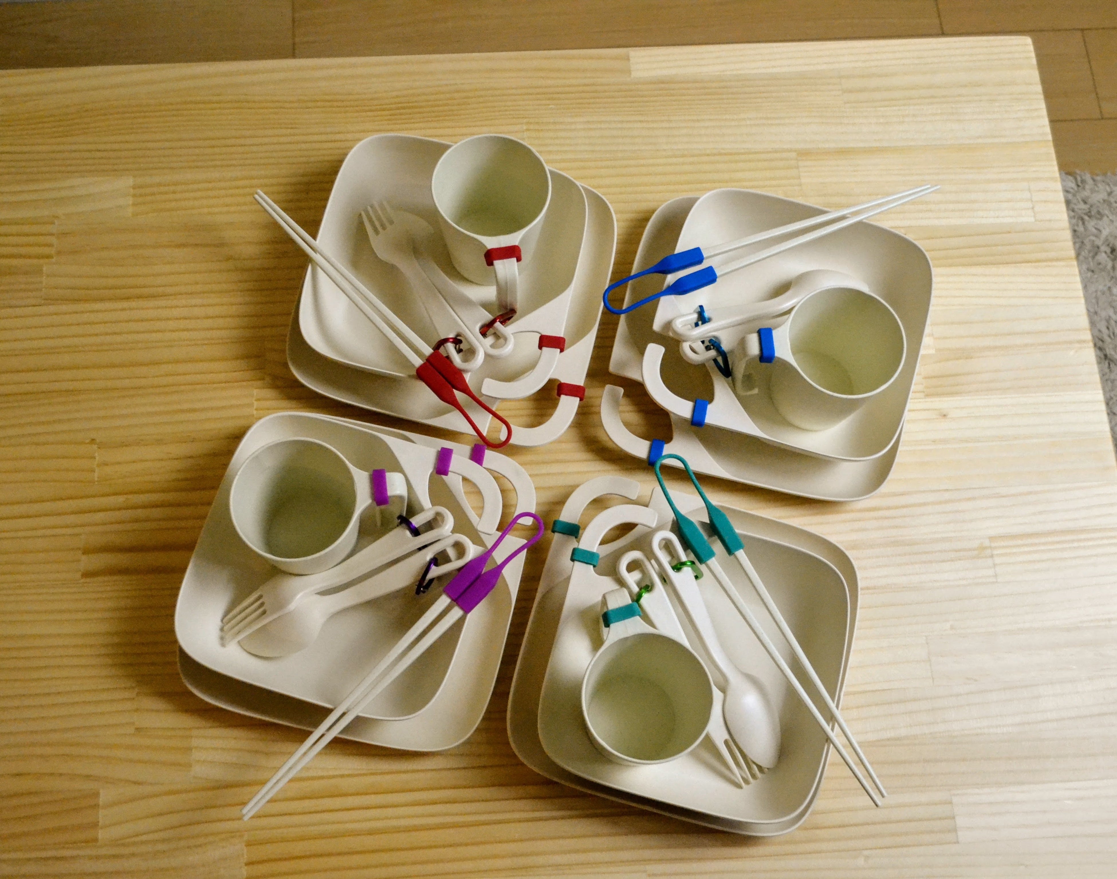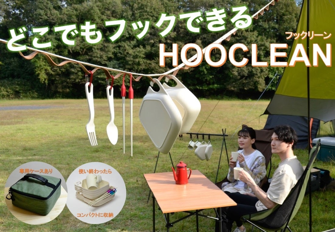 「ロープに直接吊して干せる衛生的でサステナブルなキャンピングテーブルウェア【HOOCLEAN】」
