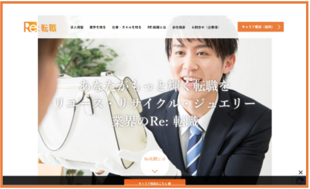 事業内容: 人材紹介事業/採用コンサルティング事業/経営・事業開発アドバイザリー/リユース・リサイクル・ジュエリー業界専門の転職・キャリア支援サイト「Re:転職」の運営