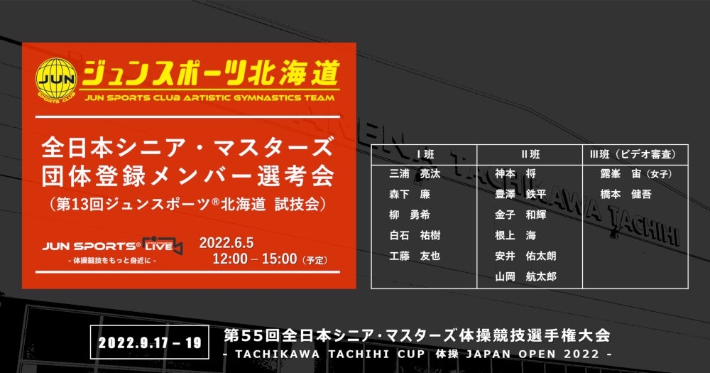 (体操)全日本シニア・マスターズ団体メンバー”最終”選考「第13回ジュンスポーツ®北海道 試技会」実施