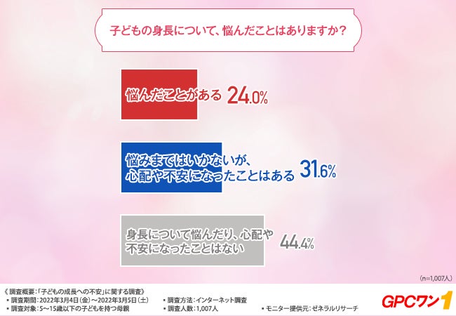 GPCワン・プレミアム レポート【親御さんが感じる子どもの成長への不安】約半数が子どもの身長について悩んだり不安になったことがあると回答