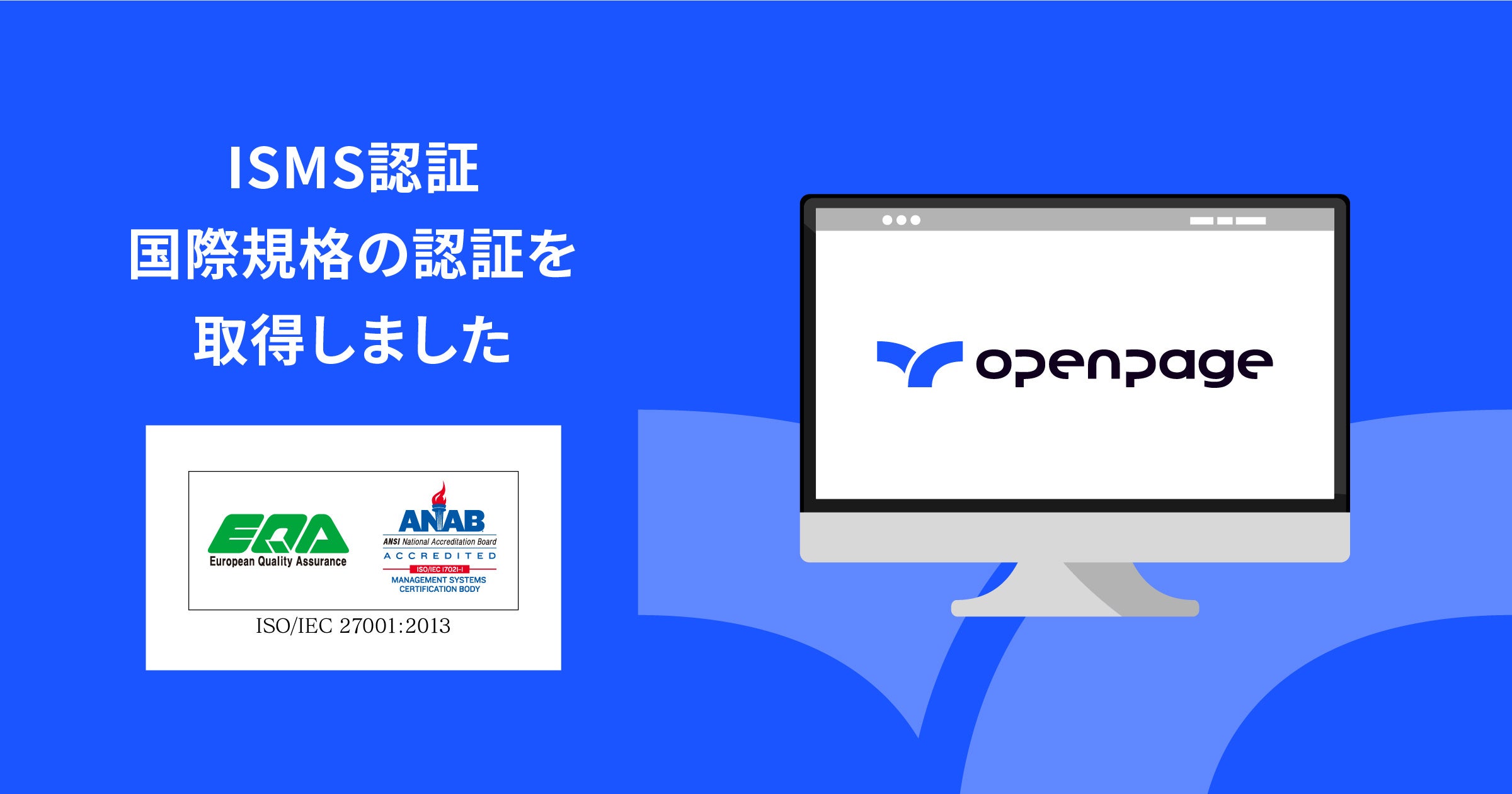 SaaS事業者向けカスタマーサクセスクラウド「openpage(オープンページ)」を運営する株式会社openpage(本社:東京都新宿区、代表取締役:藤島誓也)は、情報セキュリティマネジメントシステム(ISMS)の国際標準規格である「ISO/IEC 27001:2013 / JIS Q 27001:2014」認証を、2022年4月26日付けで取得いたしました。