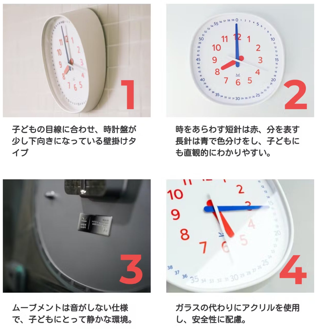 2.長針と短針の色分けで、子どもにも直観的にわかりやすい