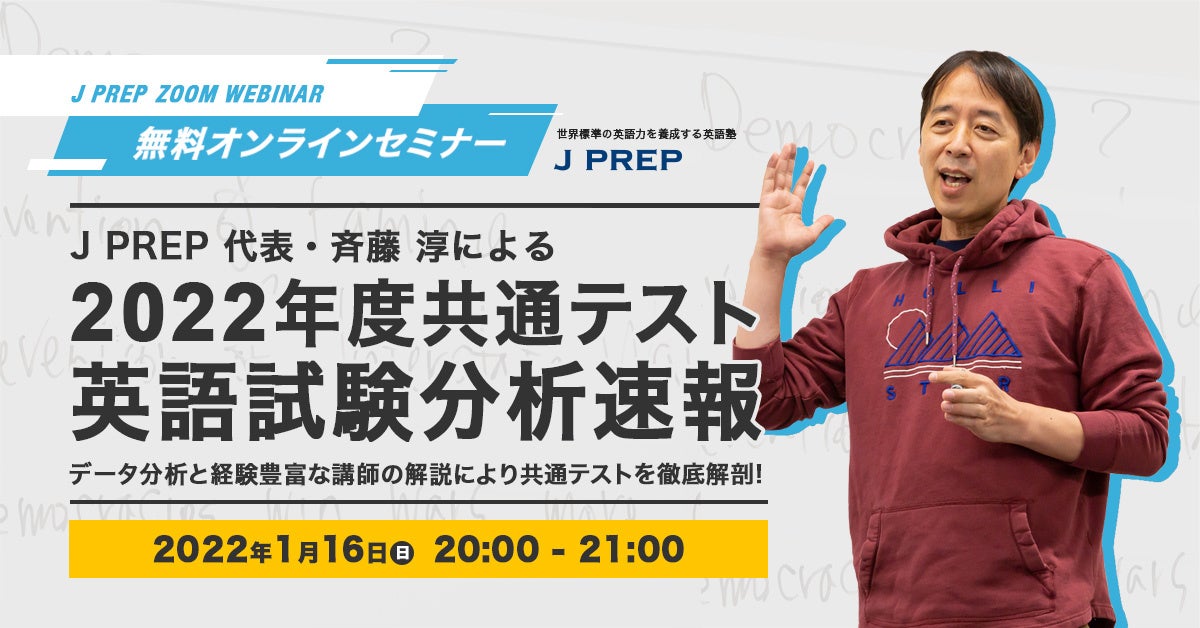 共通一次時代からセンター試験、そして昨年の共通テストまで、40年以上の試験問題を定量的に分析してきたJ PREP代表の斉藤淳が、大学受験コース統括講師と英語母語講師による解説も交え、様々な視点から2022年度の共通テスト英語試験を徹底解剖します。