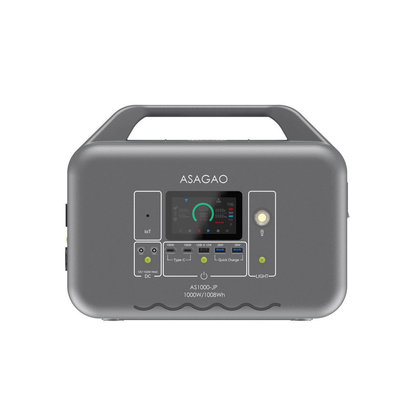 ASAGAO JAPAN 合同会社(本社:東京都港区、以下ASAGAO)は、リン酸鉄リチウムイオンを採用した大容量・高出力・急速充電のポータブル電源「AS1000-JP」を2023年2月9日(木)より、正規代理店および家電量販店、ECサイトなどで予約販売を開始し、2月中旬より出荷する予定です。