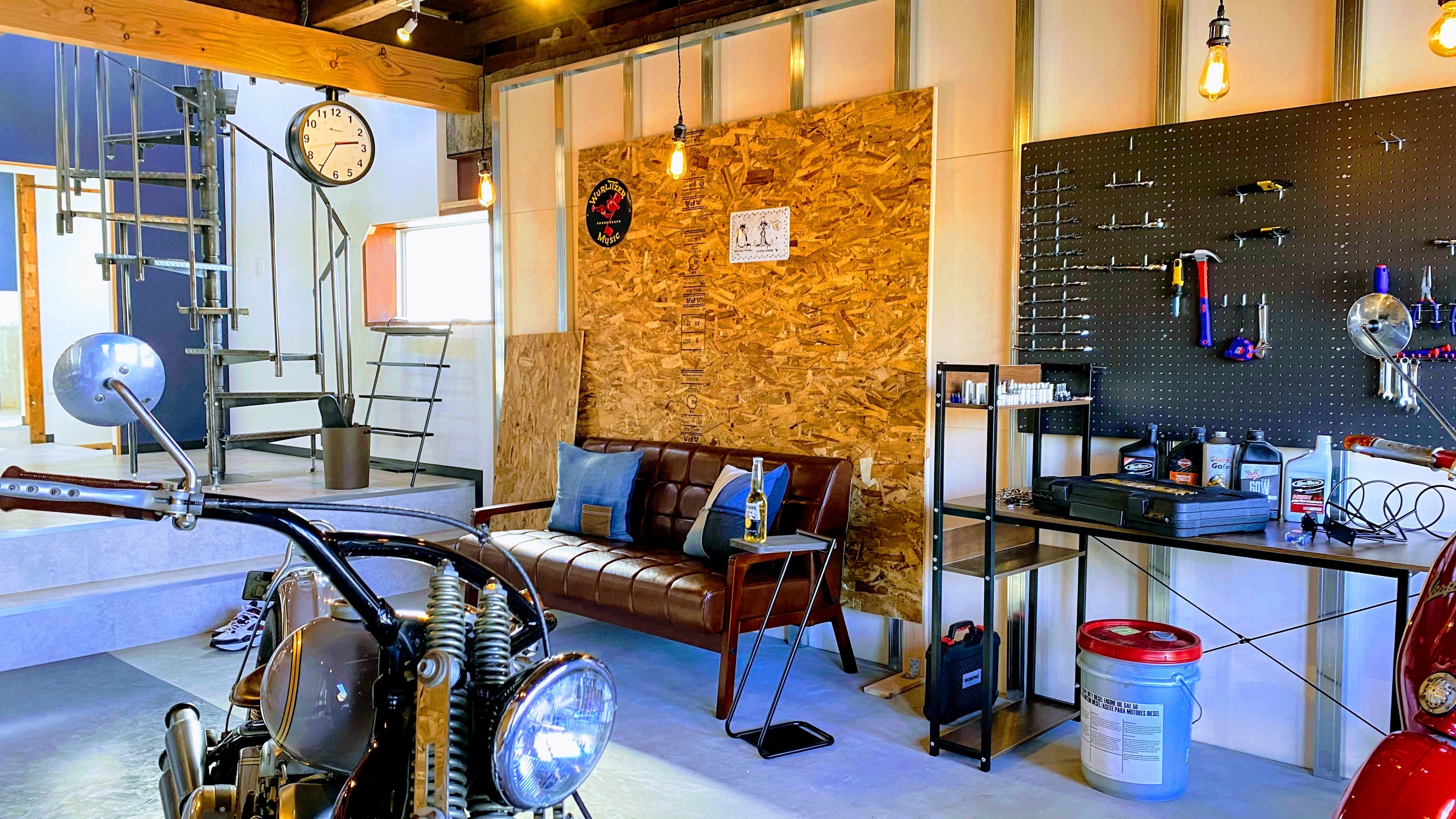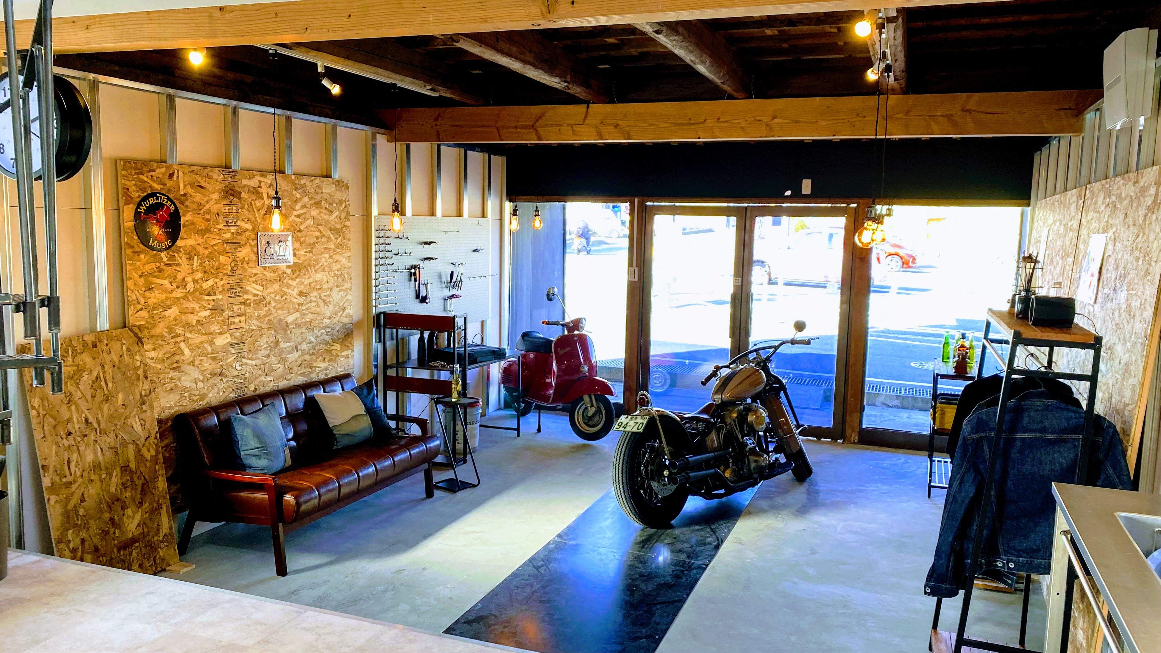 バイクを愛するライダー向けに、⼤⼈の秘密基地をイメージした新リフォームブランド「ASO島」をご 提案いたします。