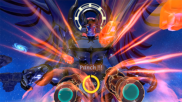 遠くから迫ってくるノーツをパンチで破壊して攻撃! なかには矢印のついたノーツもあるので、ストレートやフック、アッパーカットなどをうまく駆使して、矢印の方向通りのパンチを繰り出しましょう。