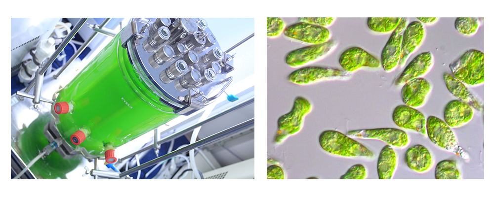 長期間にわたる地球外での人の生命維持を考えた際に、閉鎖的な空間における呼気に含まれる二酸化炭素を酸素に変換するガス交換と持続的な食料生産が必要となります。そのような中で、ミドリムシを始めとする微細藻類は光合成の効率が高く、体積当たりの生産性が高いため、人が生活する際に生み出される不要になった物を、再び人が使える資源に戻すことができる生き物として注目されています。