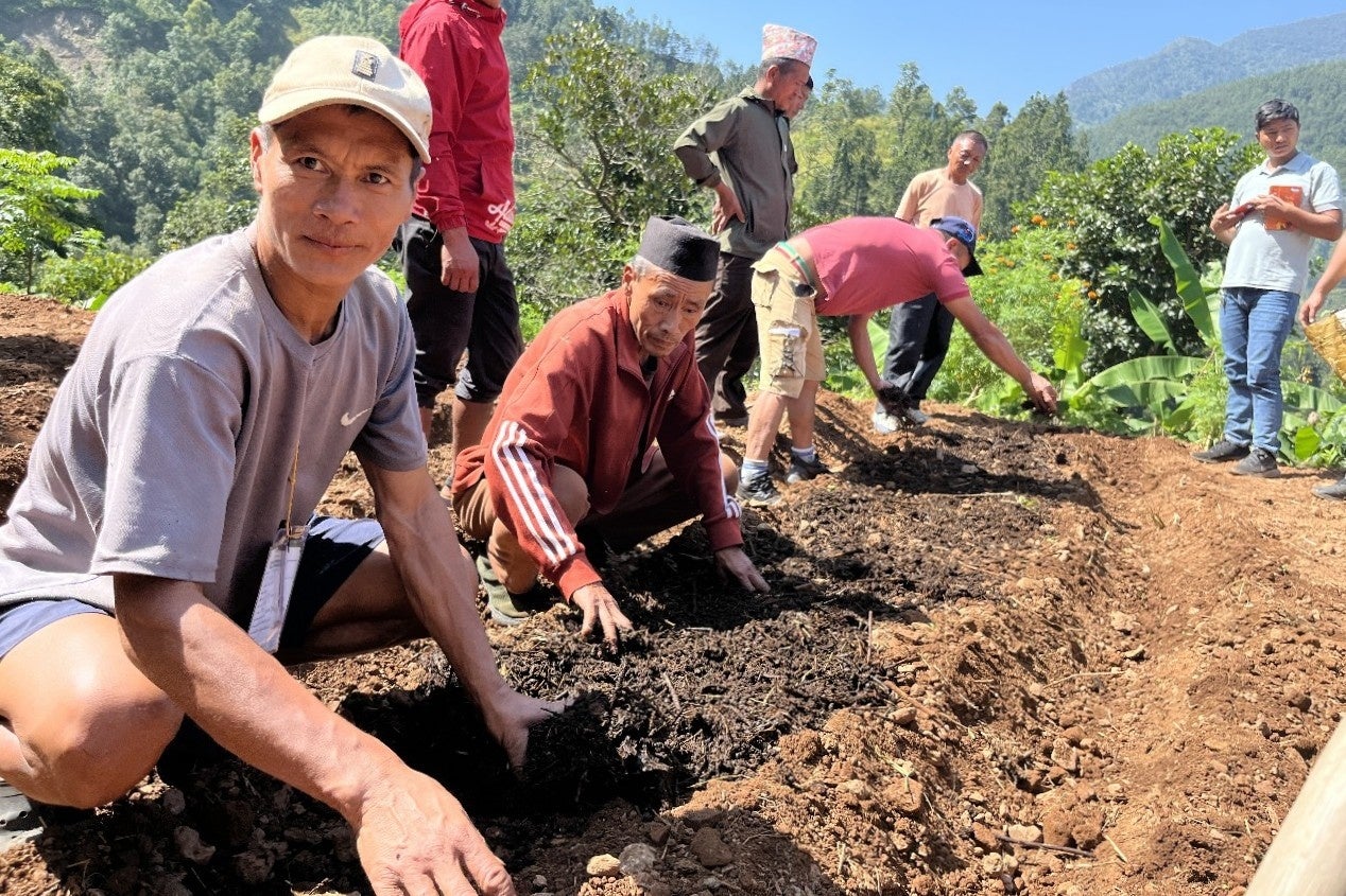 研修参加者が暮らすゴルカ郡では、急峻な斜面に広がる雑穀畑で農業が営まれていますが、住民の多くが自給自足すら難しく、若者を中心に都市部や海外へ出稼ぎに出ざるを得ない状況が続いています。