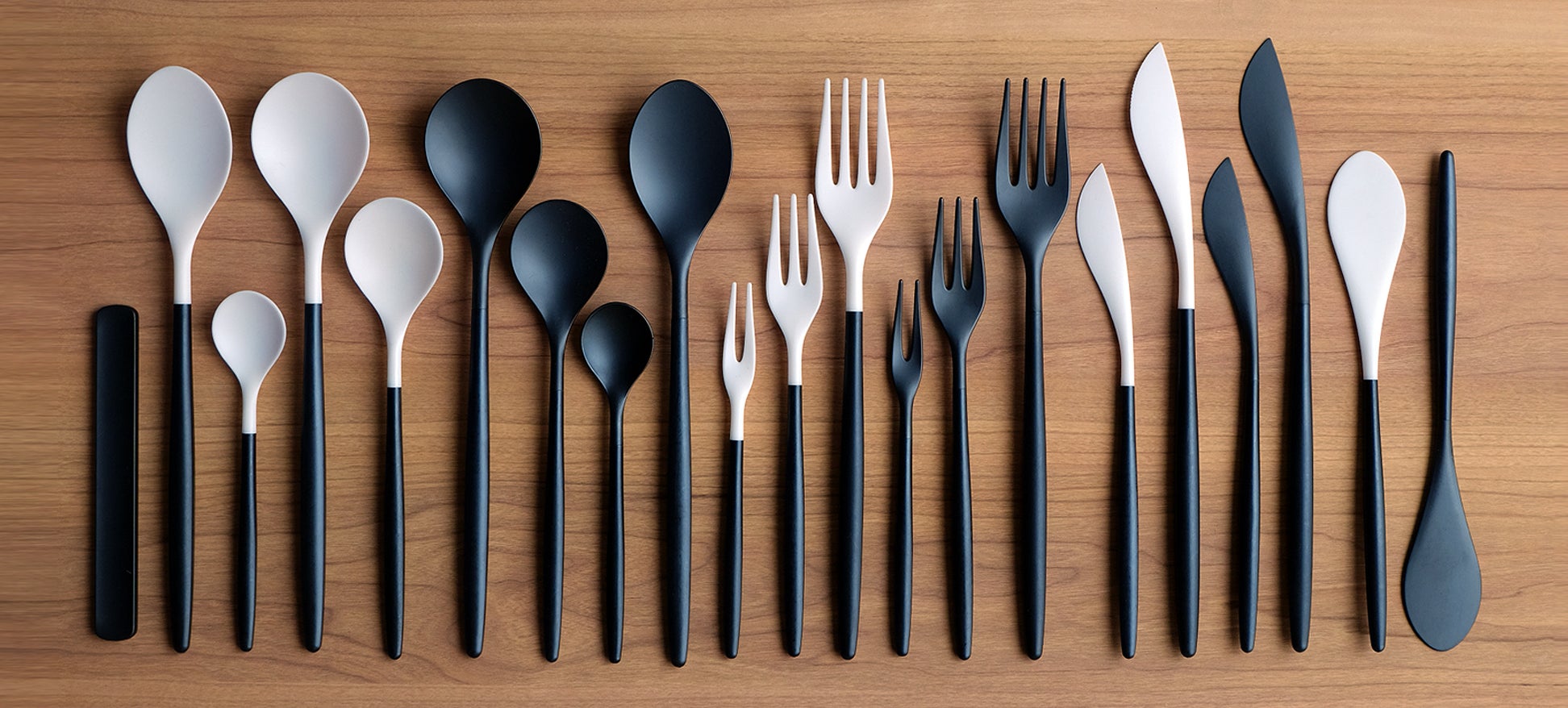この素材を使用する事によって、金属臭がなく、食洗器も使え、丈夫で長持ちし、クレンザーも漂白剤も使える上に、電子レンジにも入れられるカトラリーになります。