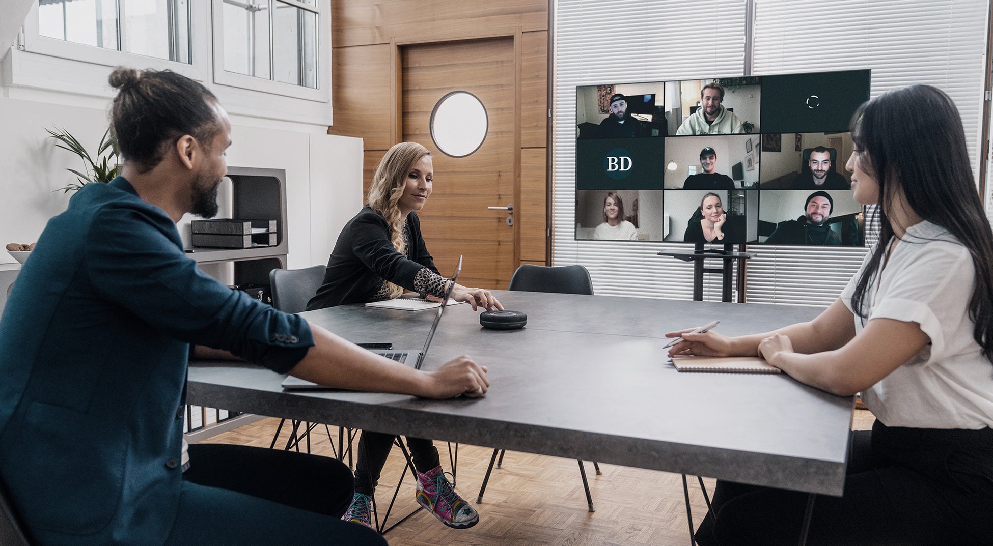 集音された音声は、自動的に最適な音量に調整されます。フルデュプレックス(全二重)オーディオ処理により、参加者は音声の欠損や浮き沈みなしで、同時に話し、聞くことができます。これは複数の参加者がいる場合も同様で、調和の取れた会話を形成します。