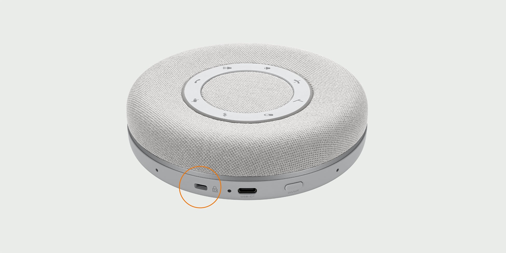 不特定多数が使用する会議室向けに、盗難防止用のケンジントンロック機構を採用しています。また底には1/4インチネジが切ってあり、テーブルに固定することも可能です。