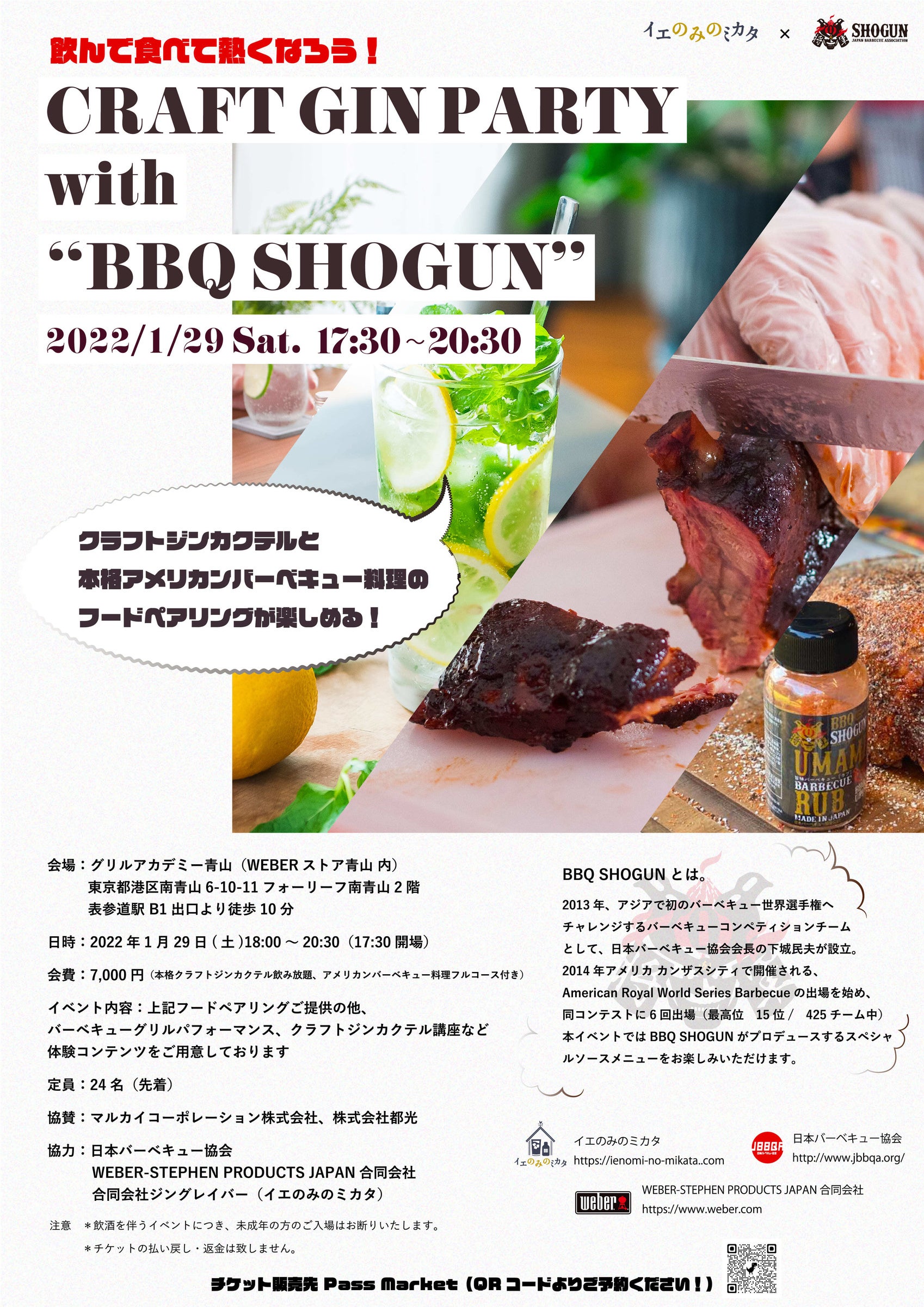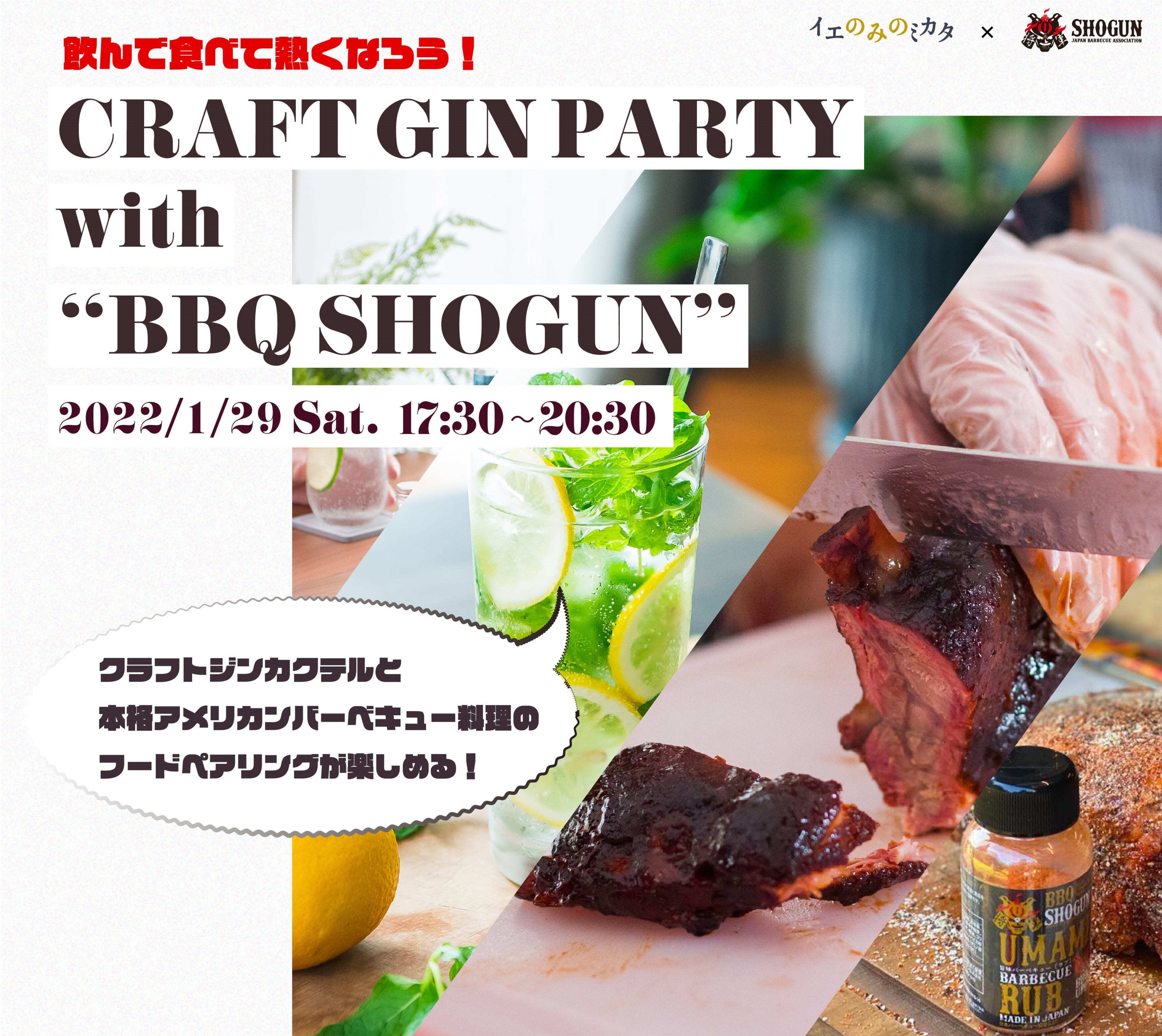【2022年1月29日(土)開催!】本格クラフトジンカクテルとアメリカンバーベキュー料理のフードペアリングが楽しめる”CRAFT GIN PARTY with "BBQ SHOGUN”開催のお知らせ