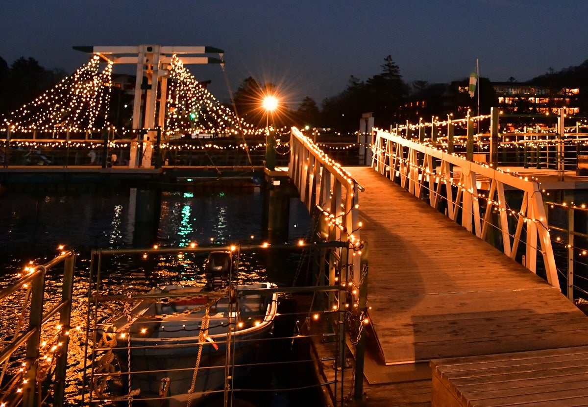 ※中禅寺湖畔イルミネーション、大鳥居ライトアップ