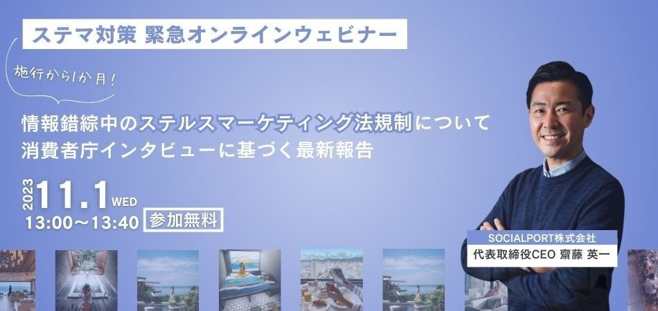 【ホテル旅館必見!】ステマ対策 緊急ウェビナー『施行から1か月!情報錯綜中のステルスマーケティング法規制について消費者庁インタビューに基づく最新報告』