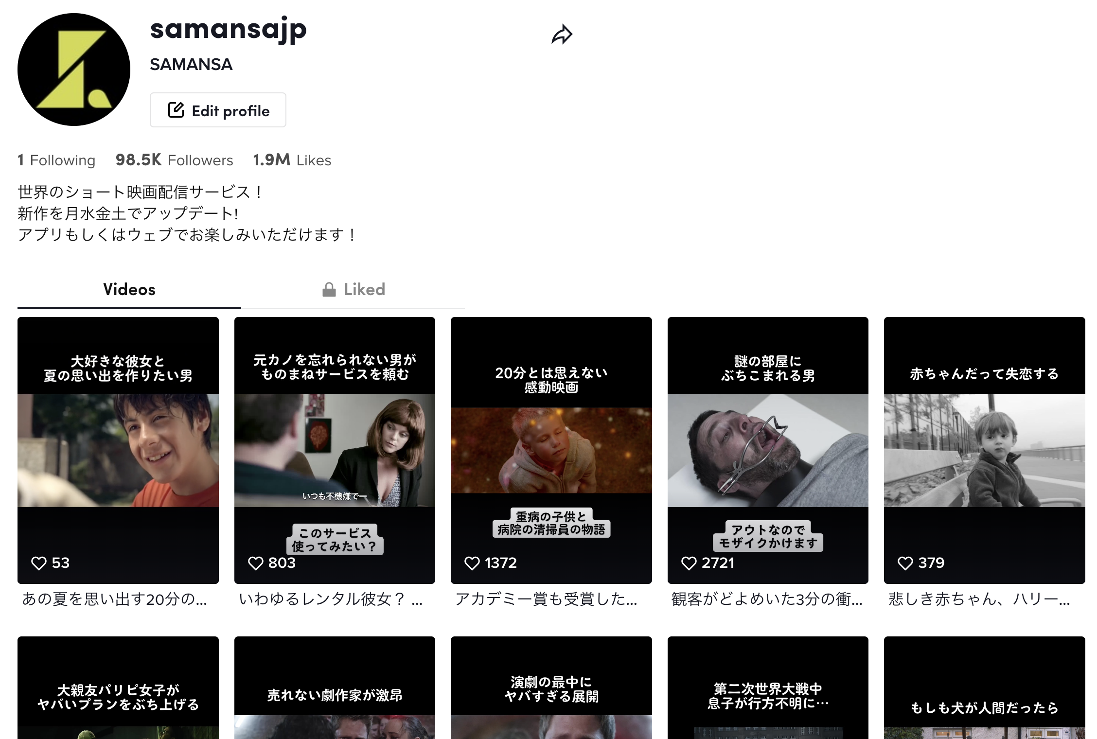 配信作品の紹介を行なっているSAMANSA公式TikTokアカウントのフォロワー数は10万人、総再生回数は5,000万回を超え、Z世代を中心にSAMANSAの認知が急速に広まりつつあります。(7月1日(金)時点)