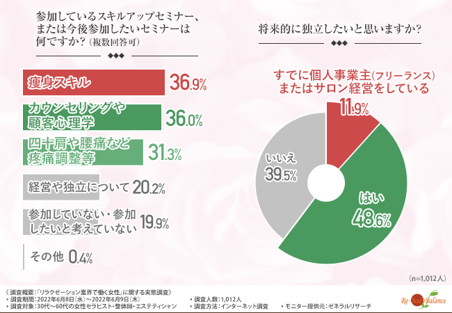 約半数の方が独立を希望していると回答!セラピスト・整体師・エステティシャンが現在困っていることは集客力?技術力?