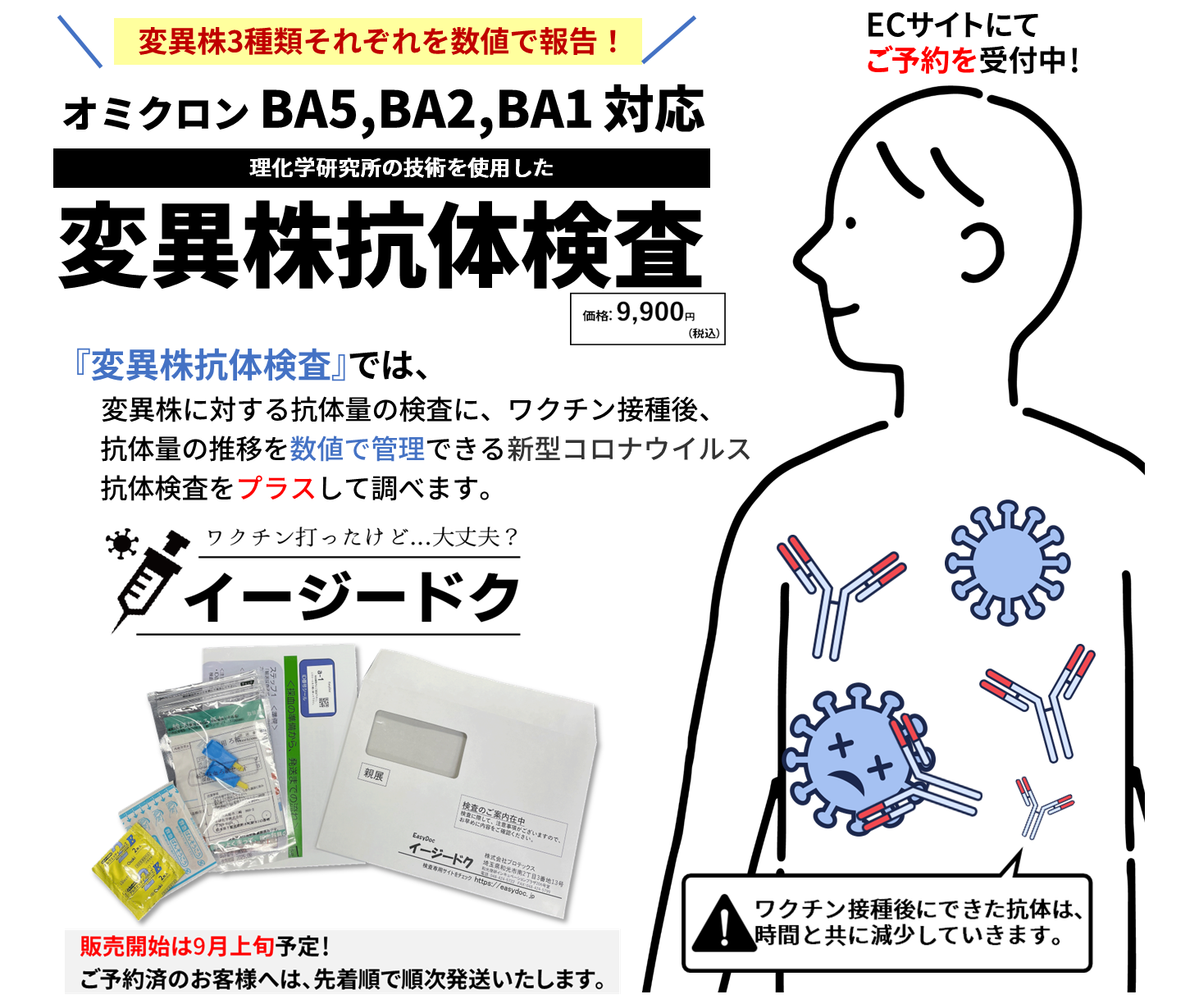 株式会社プロテックス(本社:埼玉県和光市、代表取締役:西崎政男)では、理化学研究所で開発された1滴の血液から新型コロナウイルスのオミクロン株に対する抗体を調べる検査を、自宅で受ける検査サービス「イージードクⓇ」の商品ラインアップに加えて9月13日(火)より販売を開始いたします。