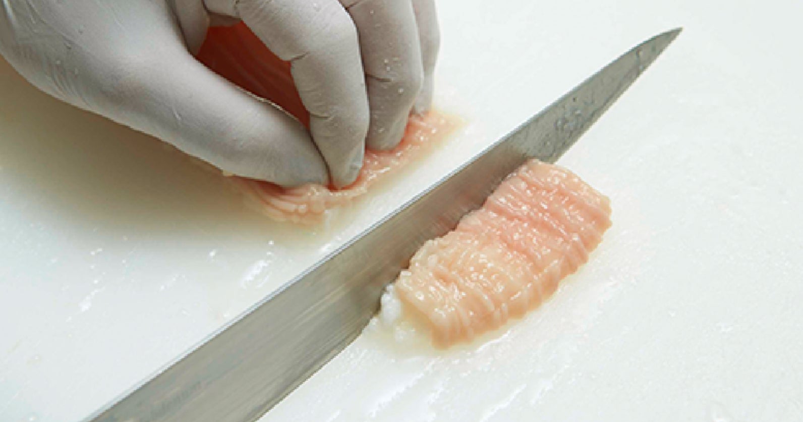 「上ミノ」¥780 豚の胃袋。1頭から500g程しか取れない希少部位、臭み無く淡泊。コリコリ食感で人気の商品です。
