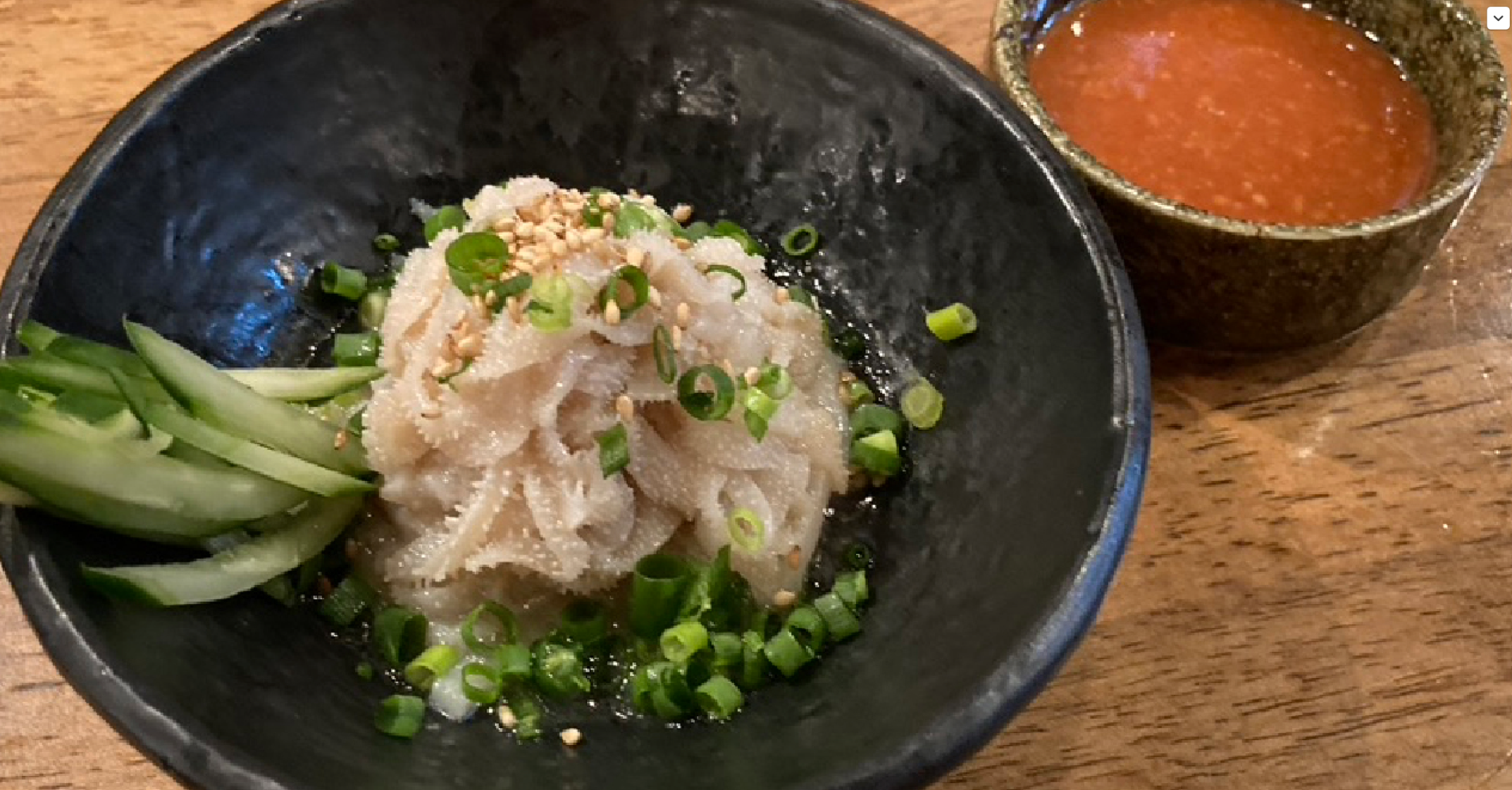 「ツラミ」¥860 牛の頬肉。繊維の多い部分ではあるがスライスにこだわり柔らか。サッパリしているので、こってりホルモンを食べた後にもおすすめ!