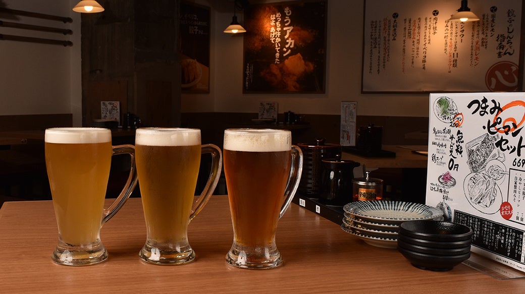今回、あべの麦酒醸造処と餃子のしんちゃんでは「とりあえずビール」の注文の時に、「どのビールにします?」と気軽に選べる楽しみをご提案したいと考えています。