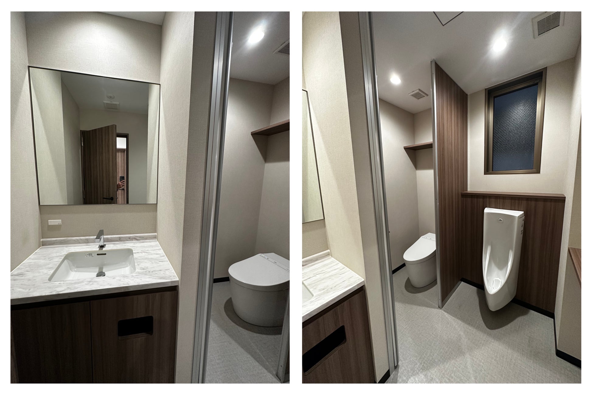 快適に使用できる男女別、合計4つの清潔なお手洗い