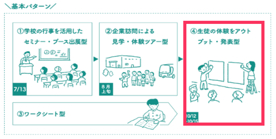 第3弾「アウトプット・表現型」プログラムは、12月に実施した、第2弾「見学・体験ツアー型」プログラムに参加した約60名の代表生徒が、実際に企業活動を見て体験した学びや情報を、グループでまとめ成果発表会を行い、参加できなかった生徒達へ情報を共有することにも繋げます。