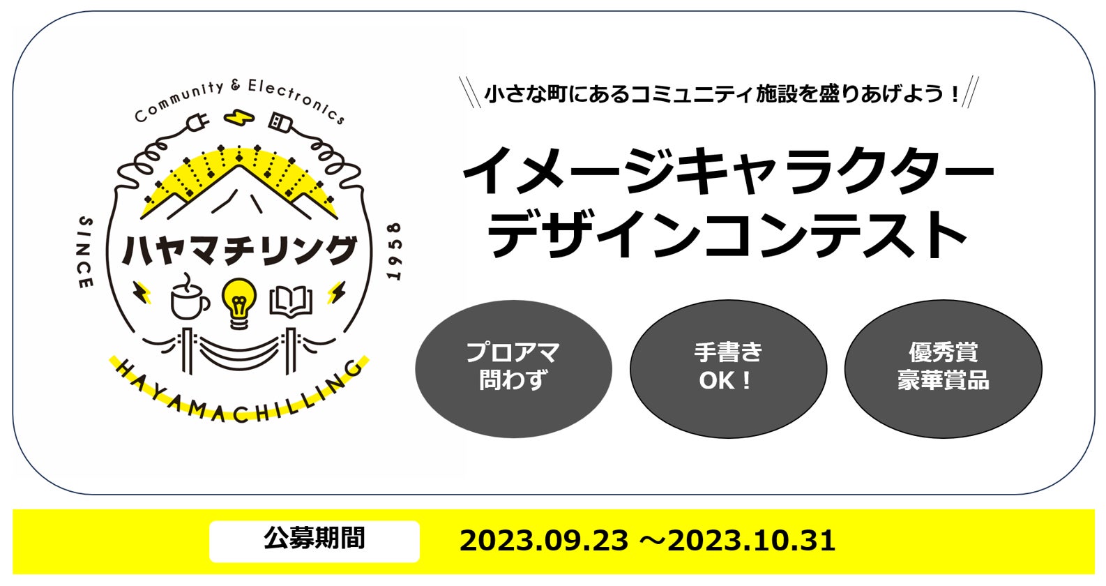 当社ナカイテレビが運営するコミュニティ施設「ハヤマチリング」のキャラクターである「ハヤマチコ」のデザインを募集致します。