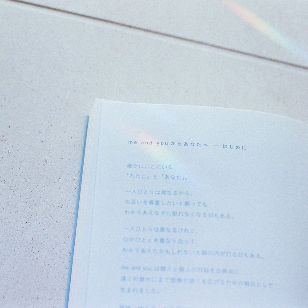 どのテーマも、歴史において複雑に絡み合った構造のなかにあり、時には自分ひとりの力でなにができるのか、立ち止まってしまうような場面もあるかもしれません。それでも、me and youが大切にしたいと考えている「個人と個人の対話」や「“わたし”と“あなた”という小さな主語」を立脚点とし、自分たちを含め、一人ひとりが自分の内側にもっている感情や経験を振り返りながら、個人的な想いをなかったことにしないまま、どう社会の構造と向き合い、関わっていくのかということについて、迷い、悩みながらも前身していくための光を見つけるような一冊になることを願っています。