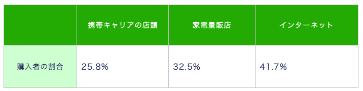 家電量販店での購入が32.5%、携帯キャリアで購入は最も少なく25.8%という結果となりました。