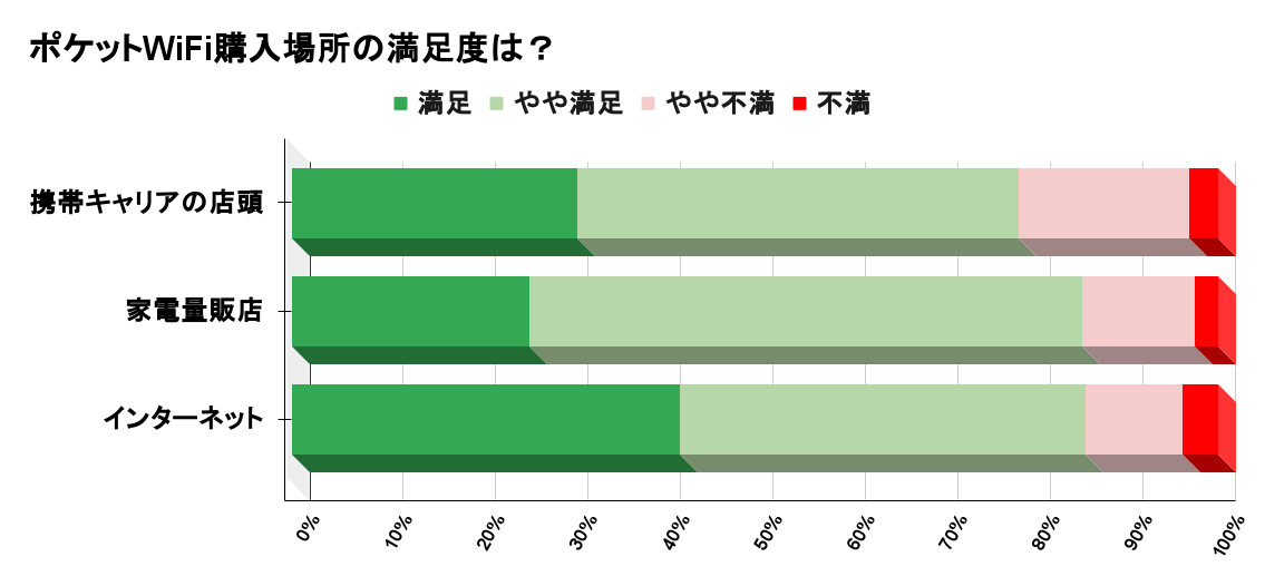 今回のポケットWiFiの購入場所と満足度調査により、次のことが分かりました。