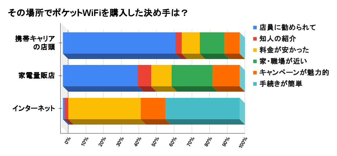 「その場所でポケットWiFiを購入した決め手は何か?」についてアンケート調査した結果は次の通りです。