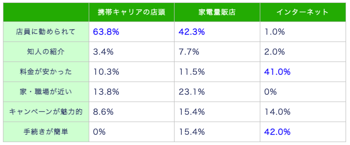 この結果から、料金の安さや手続きの簡単さを重視する人は、インターネットを選んでいると言えそうです。