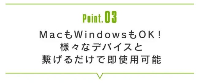 面倒なドライバソフトウェアのインストールは一切不要。デバイスに接続して即使用可