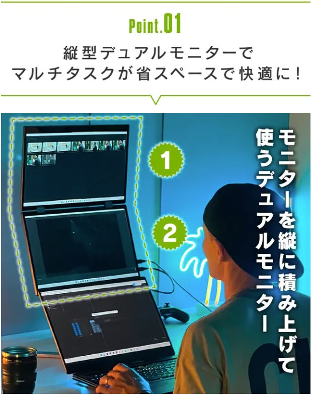 【Lepow DualViews】はモニターを縦に積み上げて使うデュアルモニターです。