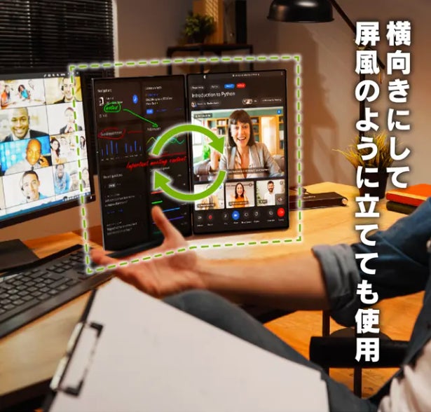 縦置きや分割表示、ミラーリング、対面使用など多彩な用途で利用可能