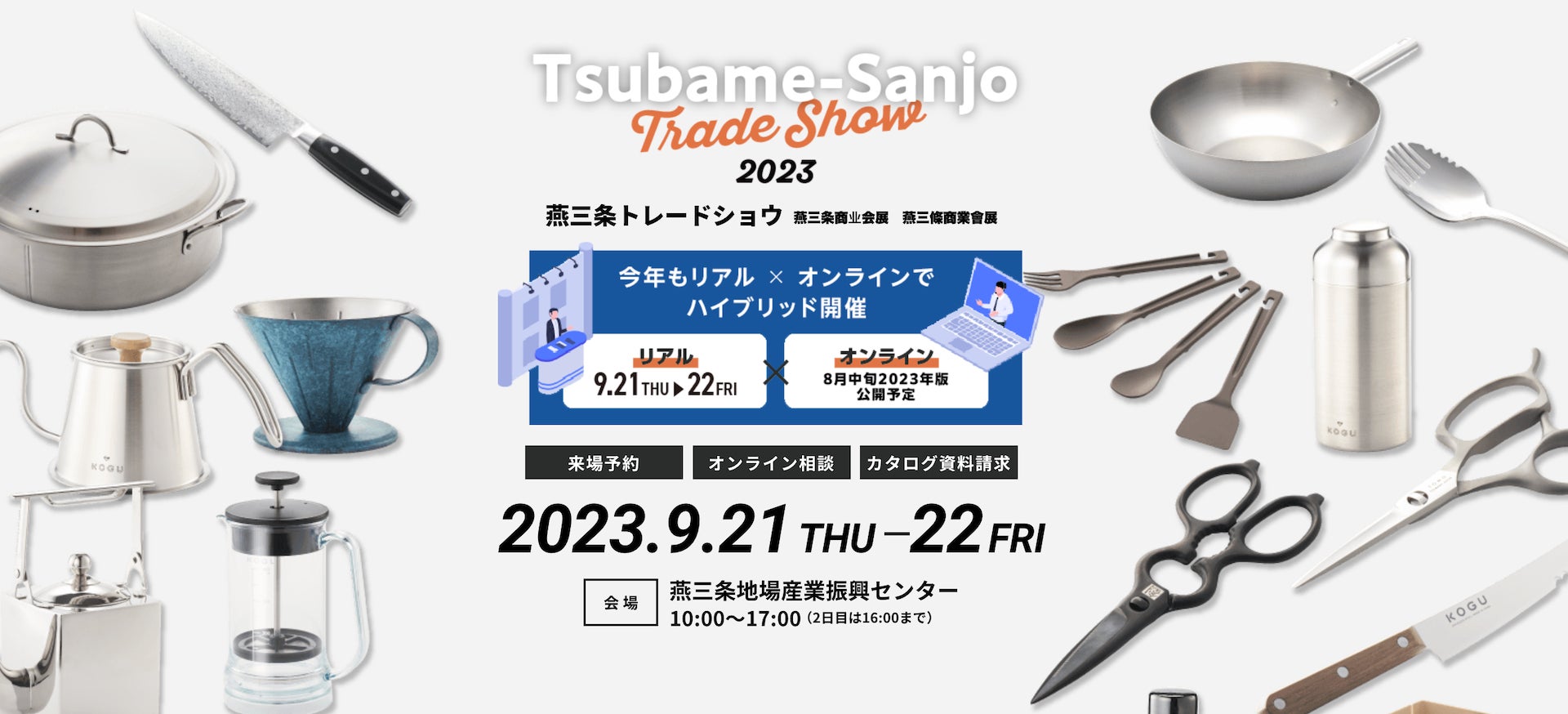 1949年の設立から70年以上にわたり、燕市の商工業の発展とともに事業を展開してきた燕商工会議所は、隣の市である三条市 とタッグを組み、今年で開催7回目となる見本市「燕三条トレードショウ2023」を9/21(木),22(金)に開催します。 (主催:燕三条トレードショウ実行委員会(燕商工会議所・三条商工会議所))