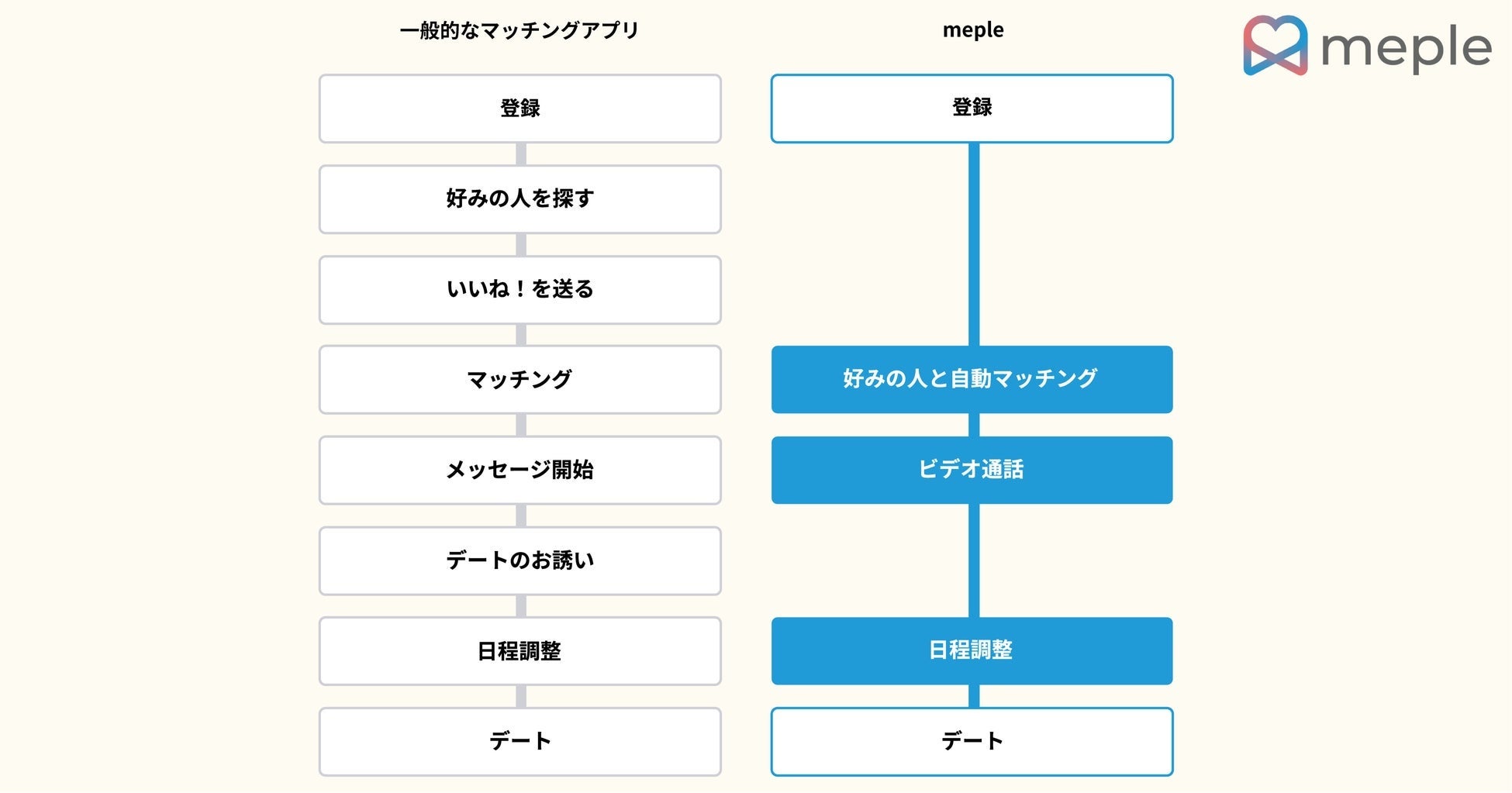 mepleはマッチングアプリの早期卒業をサポートするマッチングサービスです。